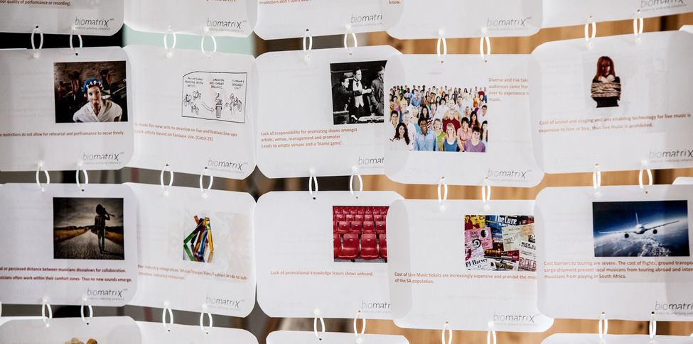 This installation represents the design contribution of BiomatrixWeb to the Cape Town World Design Capital initiative of 2014. It was designed by Hagar Graiser and Dr. Elisabeth Dostal and was exhibited and discussed at the World Music Festival 2014 held in the City Hall of Cape Town on 18 July 2014.